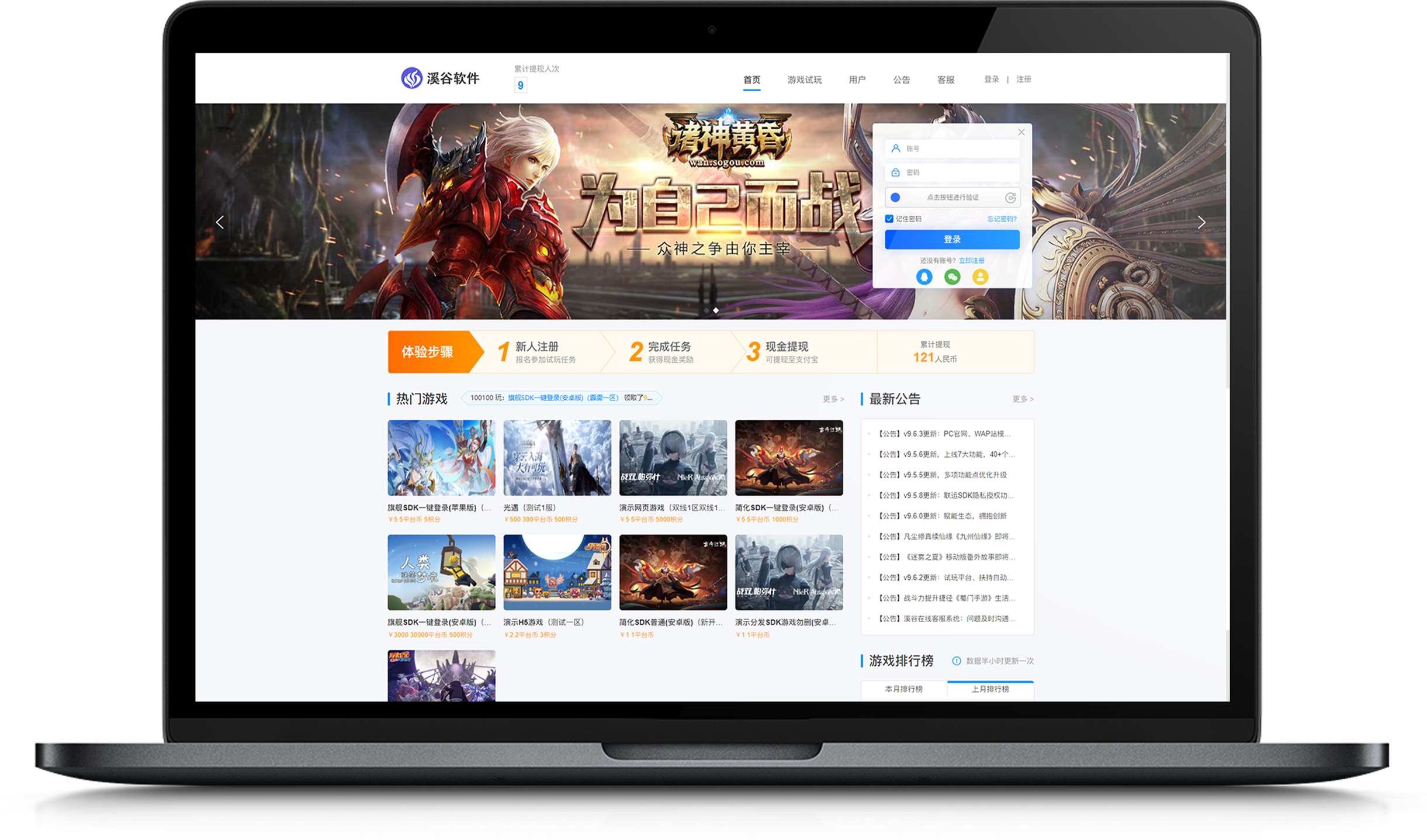 • 推廣PC/WAP:全站UI改版,優化游戲推廣,更簡單便捷;